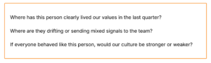This part of the review is where you decide whether to protect the culture or the short-term numbers.