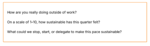 And if they haven’t taken time off, you actually encourage them to book some and explain why: burnout hurts them, their manager, and the company.